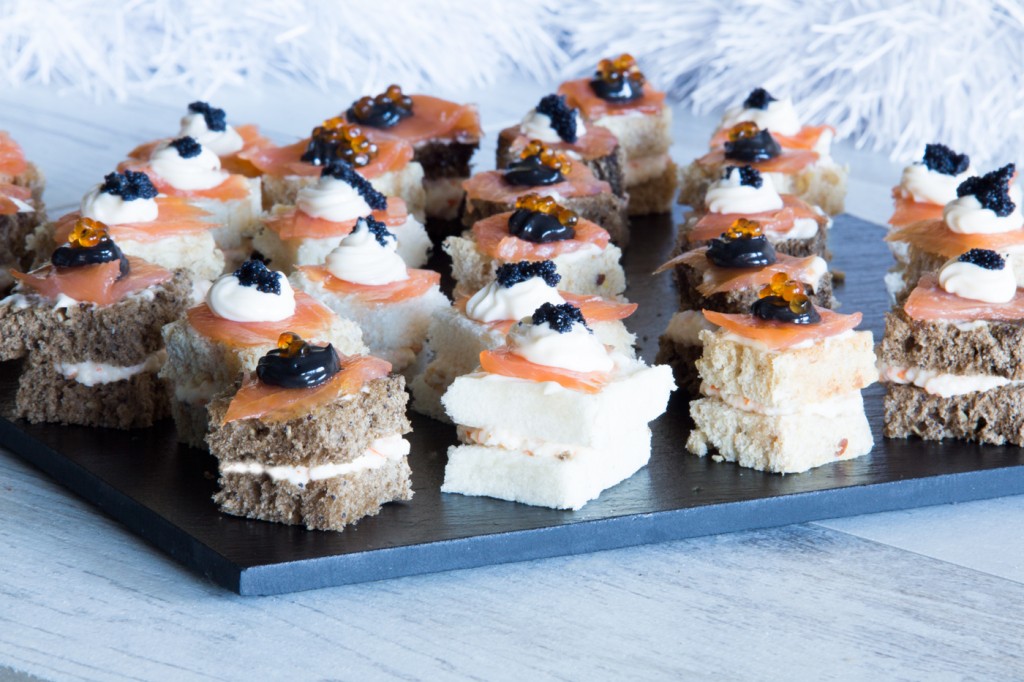 Canapés de Chatka con Salmón y Caviar by Lu.