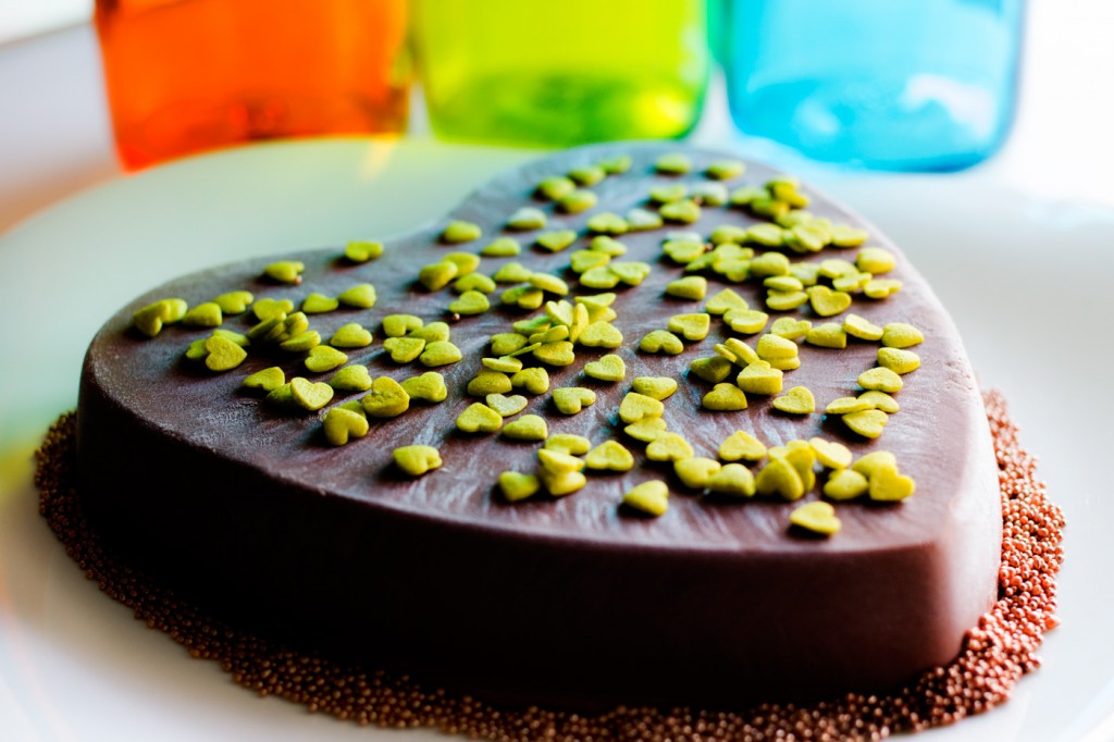 Queda muy vistoso decorado con azúcar de colores porque contrasta muy bien con el color oscuro del chocolate. Y también con las claras que te sobran puedes hacer un merengue para acompañar a este corazón mousse de chocolate.