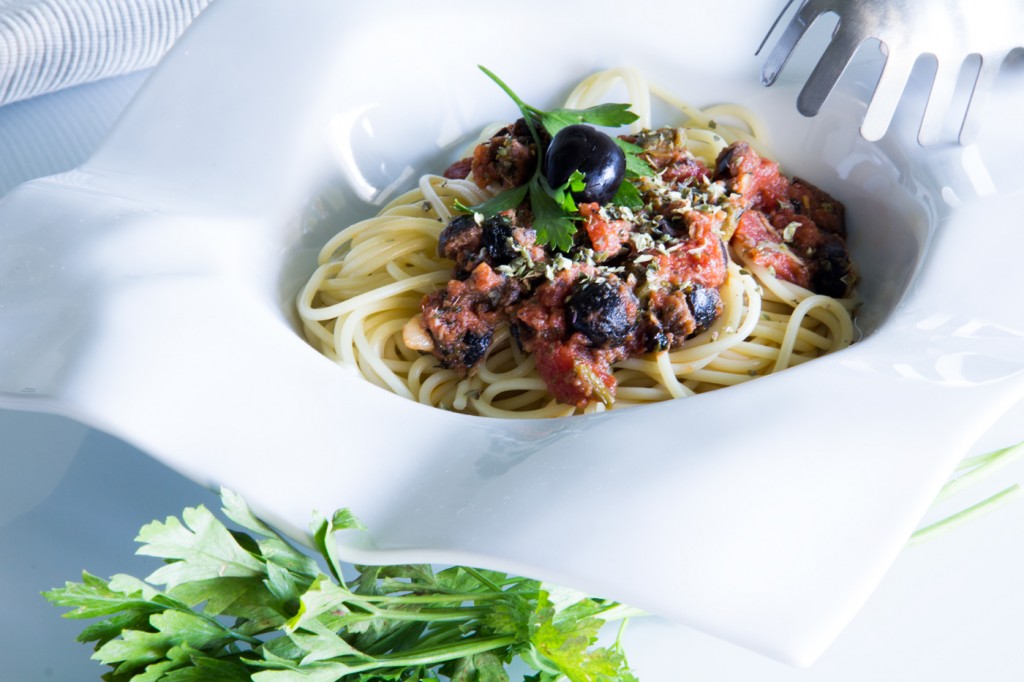 Buongiorno. En esta ocasión vamos a hacer espaguetis a la puttanesca. Es una receta muy sencilla cuyos ingredientes principales son las anchoas y las aceitunas negras. Está tan deliciosa que, desde que la conocí, se ha convertido en mi salsa favorita para los espaguetis.