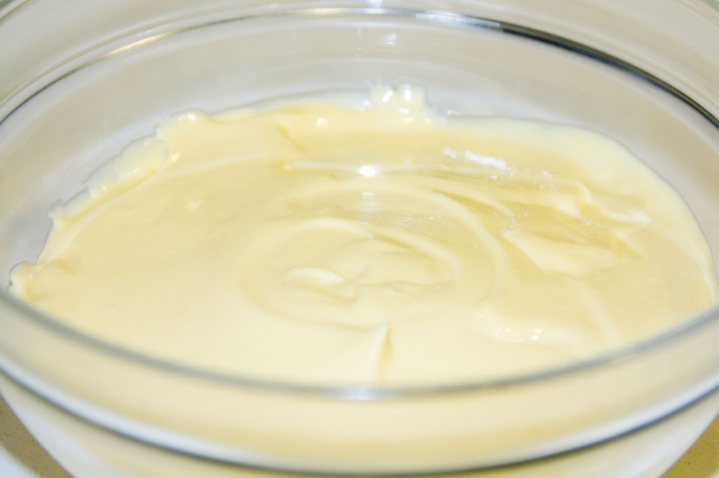 1. En un vaso para batir ponemos 2 huevos, 1 y ½ vaso de aceite de girasol, 1 chorretón de aceite de oliva, sal y el zumo de ½ limón.