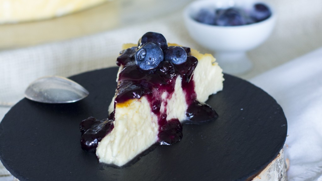 A temperatura ambiente está muy rica, sin haberla metido en el frigorífico y combina muy bien con mermelada de arándanos y unos arándanos frescos muy fríos puestos por encima.